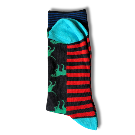 Help Save a Life: A graceful 10% from this pair is donated to Tails of Freedom.Black and green socks with playful dog patterns, crafted with 200-knit jacquard stitching for a smooth, durable finish. Cotton-blend, odourless, unisex, and perfect for everyday comfort in Sri Lanka’s warm climate.