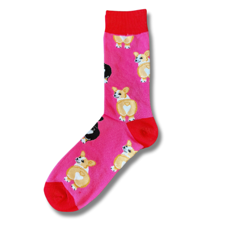 Help Save a Life: A graceful 10% from this pair is donated to Tails of Freedom.Pink socks with corgi patterns, crafted with 200-knit jacquard stitching for a smooth, durable finish. Cotton-blend, odourless, unisex, and ideal for everyday comfort in Sri Lanka’s warm climate.