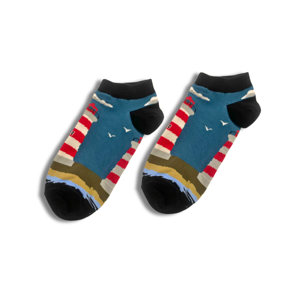 Guide your steps in style with Beacon Blue ankle socks, subtly displaying a lighthouse beacon theme while staying fully copyright compliant. Crafted using Sokk Republic’s high-grade 200 knit jacquard stitching, they offer plush softness, durable strength, and airy ventilation. The cotton blend ensures cool fresh wear throughout Sri Lanka’s tropical humidity. Perfect for adults who enjoy nautical themes and calm ocean-inspired fashion.