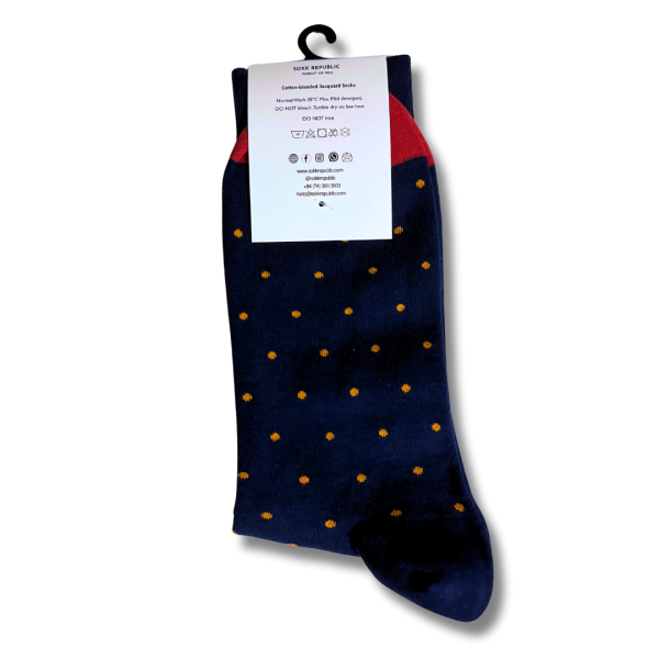 Liven up your corporate style with these premium Blue and Yellow Polka Dot Office Socks. Made with 200 knit Sokk Republic branded jacquard cotton blend, they’re soft, breathable and odour-free for everyday comfort in Sri Lanka.