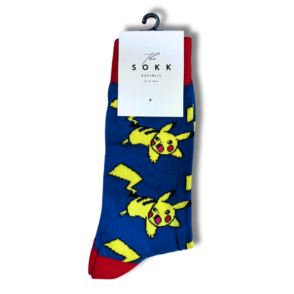 Energise your step with these premium Pikachu design Socks from Pokémon franchise featuring a striking design and cotton-blend softness. With 200 knit Sokk Republic branded jacquard quality, they deliver odourless freshness for office, gym, or casual wear in Sri Lanka.