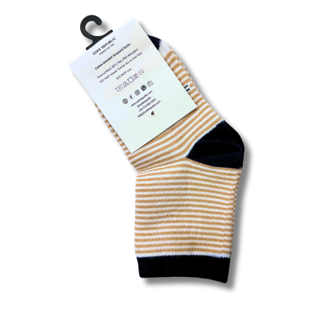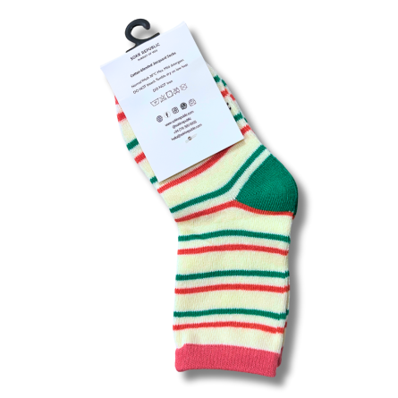 Kids socks with a playful striped theme crafted in 200-knit jacquard. Soft, odour-free, breathable socks suitable for ages 3–5 years.