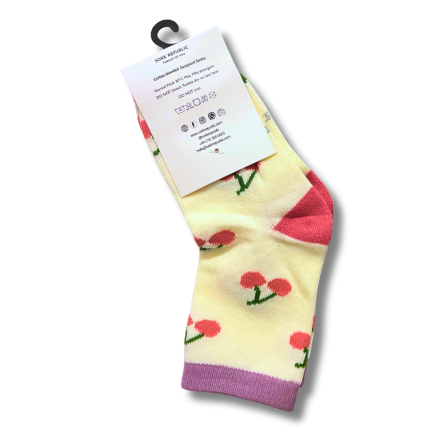 Baby socks featuring a cute cherry design, crafted with 200-knit jacquard. Breathable, odourless, cotton-blend socks for toddlers aged 3–5 years.